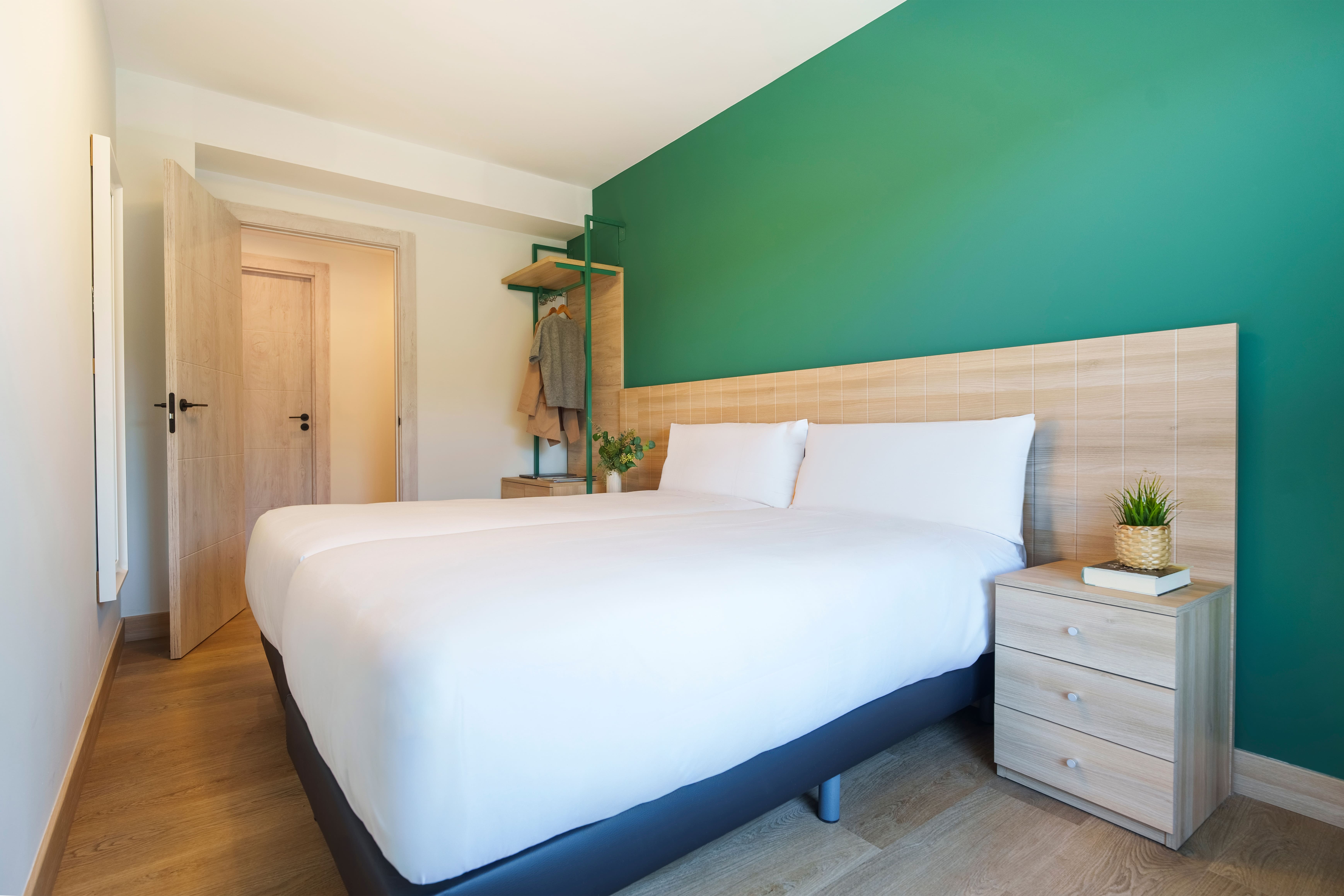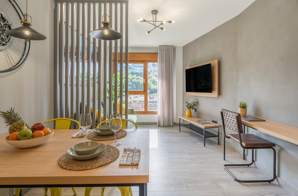 Spacious apartments completely renovated with a modern design that offer spaces of up to 45 m² with a living-dining room, open kitchen, 1 bedroom, and a private bathroom with a rain shower. The bedroom can be with a queen-size bed of 1.50 m or two single beds. The fully equipped kitchen includes a washing machine, refrigerator, dishwasher, ceramic hob, and oven - microwave, among others. In the living-dining room you will find a Smart TV, capsule coffee maker, desk, and sofa bed.