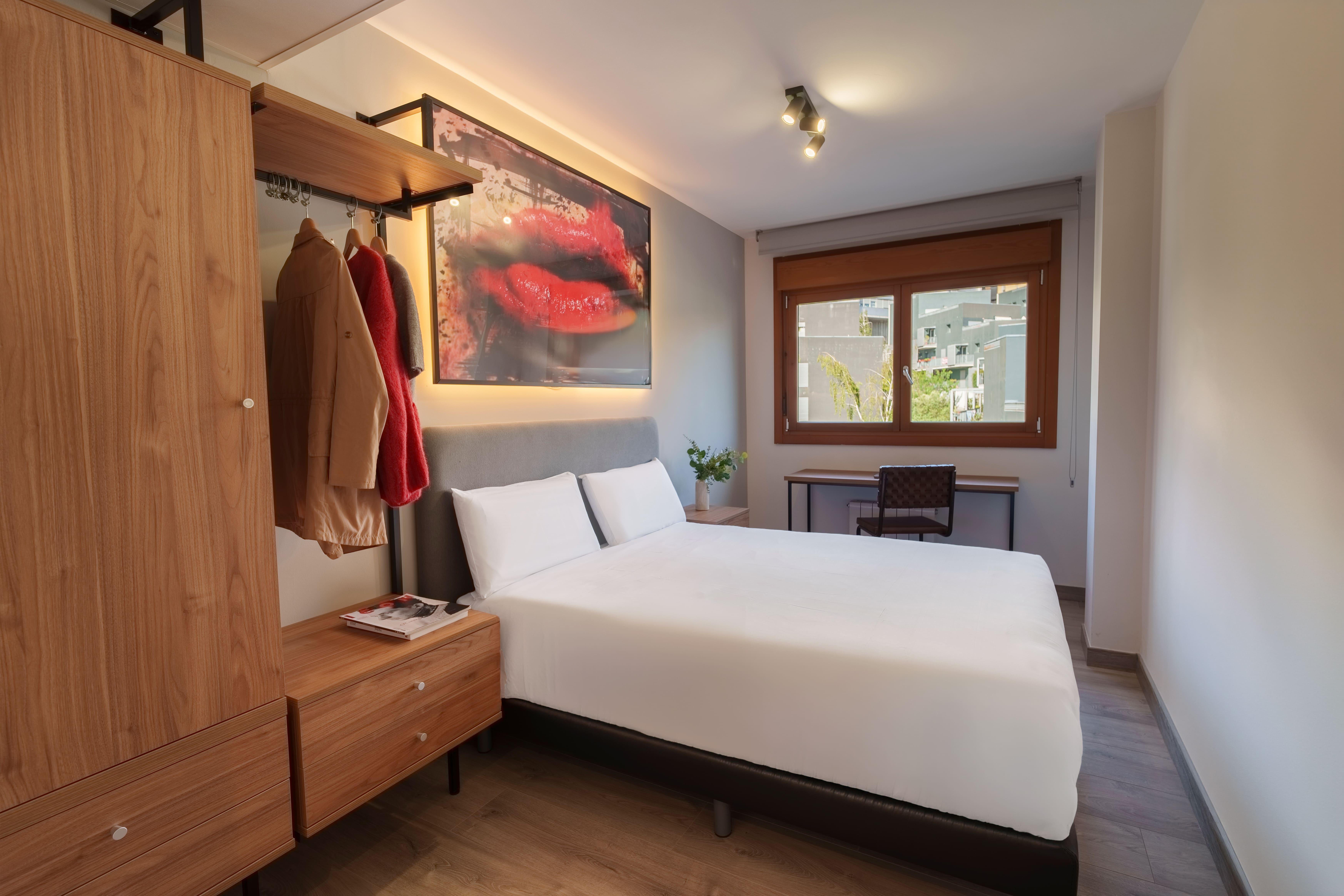 Bright and completely renovated apartments of up to 65 m² with a private terrace with afternoon sun and views of the city skyline and the Bilbao estuary. The rooms can have a queen size bed of 1.50 m or two single beds. They have a living room, open kitchen, and a private bathroom with a rain shower. The kitchen is fully equipped with an oven-microwave, ceramic hob, refrigerator, washing machine, and dishwasher, among others. In the spacious living room, you will find a Smart TV, capsule coffee maker, desk, and sofa bed.